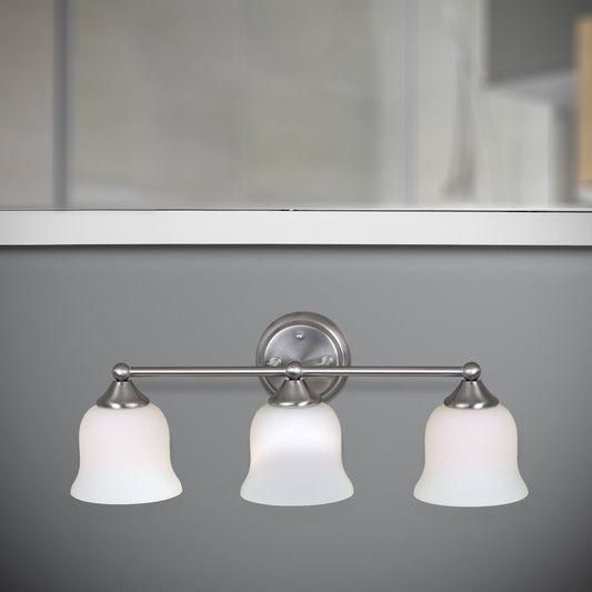 Forte Lighting Dani 24" 3-Light Steel Brushed Nickel Bath Bar With Satin Opal Glass Shades