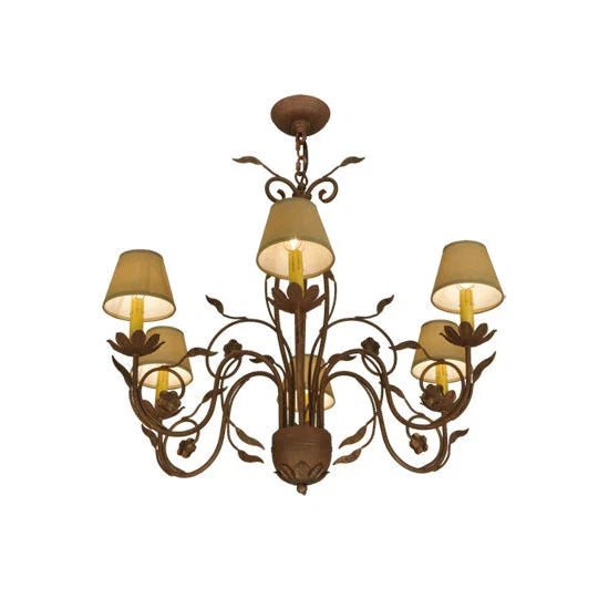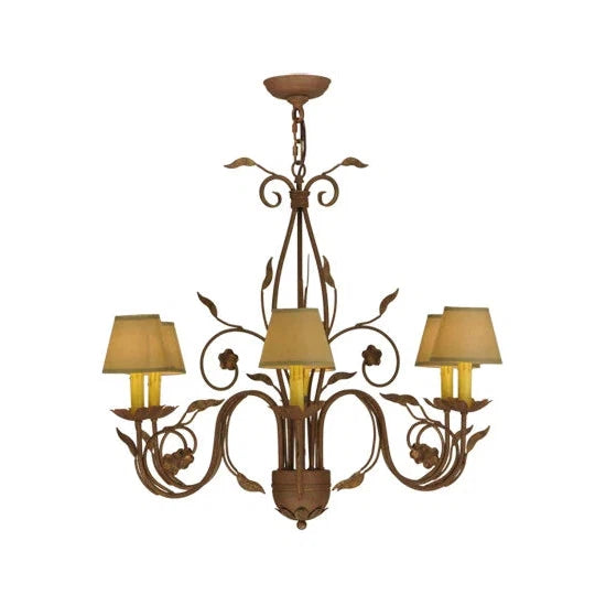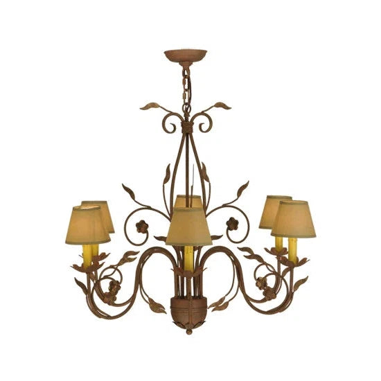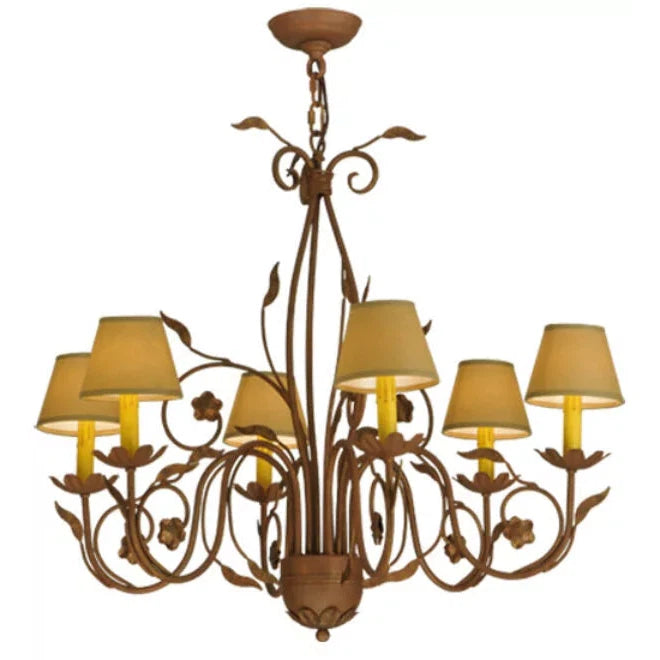 2nd Ave Lighting Bordeaux 31" 6-Light Cream Textrene Shade Organic Rust Chandelier