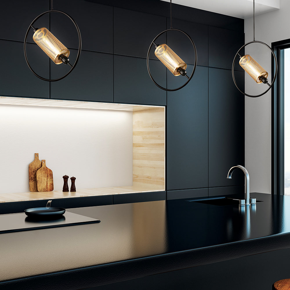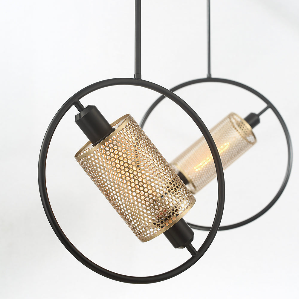 The Seamore offers a modern look with its light gold mesh cylinder offset within a black ring.