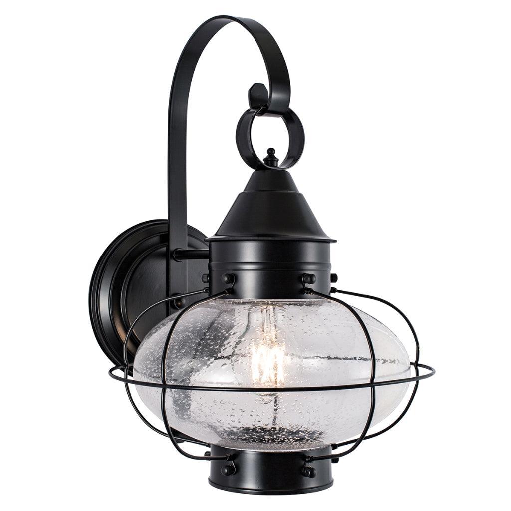 Norwell Lighting Cottage Onion 16" x 11" 1-Light Black Large Outdoor Wall Light With Seedy Glass Diffuser
